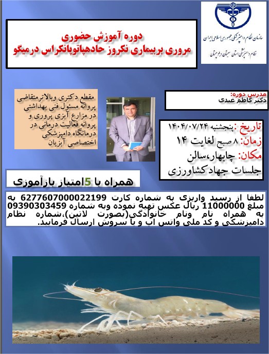 دوره آموزش حضوری مروری بر بیماری نکروز حاد هپاتوپانکراس در میگو