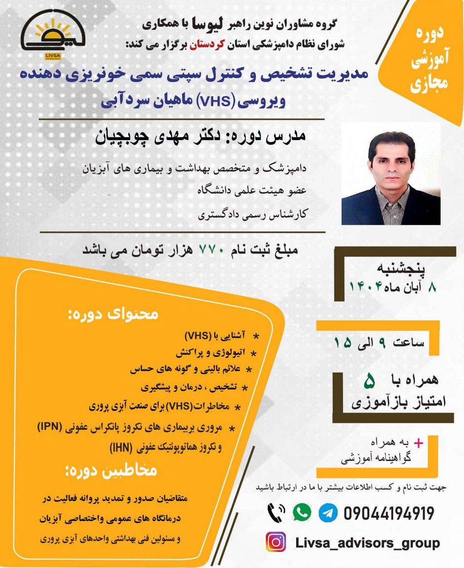 🔴🔴دوره آموزشی مجازی مدیریت تشخیص و کنترل سپتی سمی خونریزی دهنده ویروسی(VHS) ماهیان سردآبی