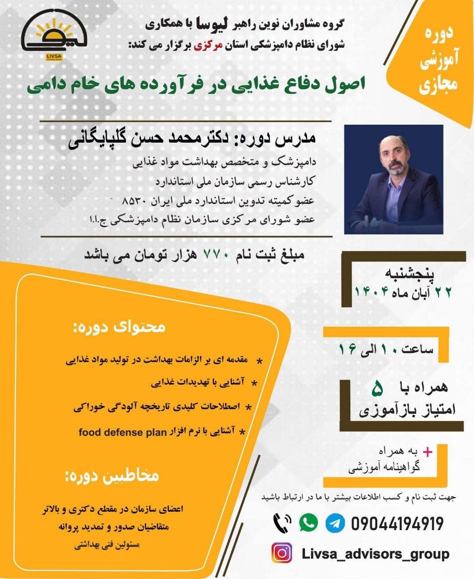 🔴🔴دوره آموزشی مجازی اصول دفاع غذایی در فرآورده های خام دامی