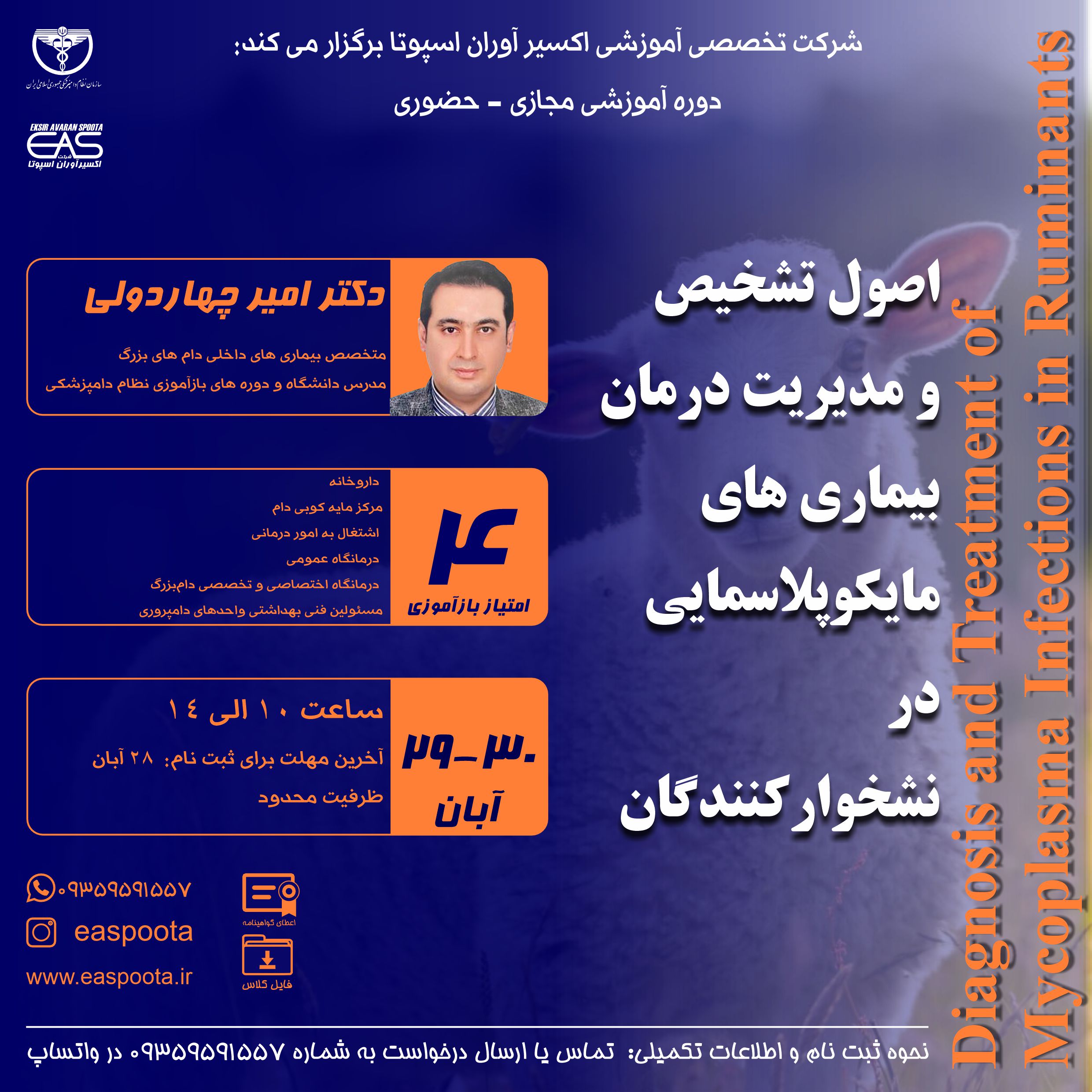 دوره آموزشی مجازی- حضوری" اصول تشخیص و مدیریت درمان بیماری های مایکوپلاسمایی در نشخوارکنندگان"