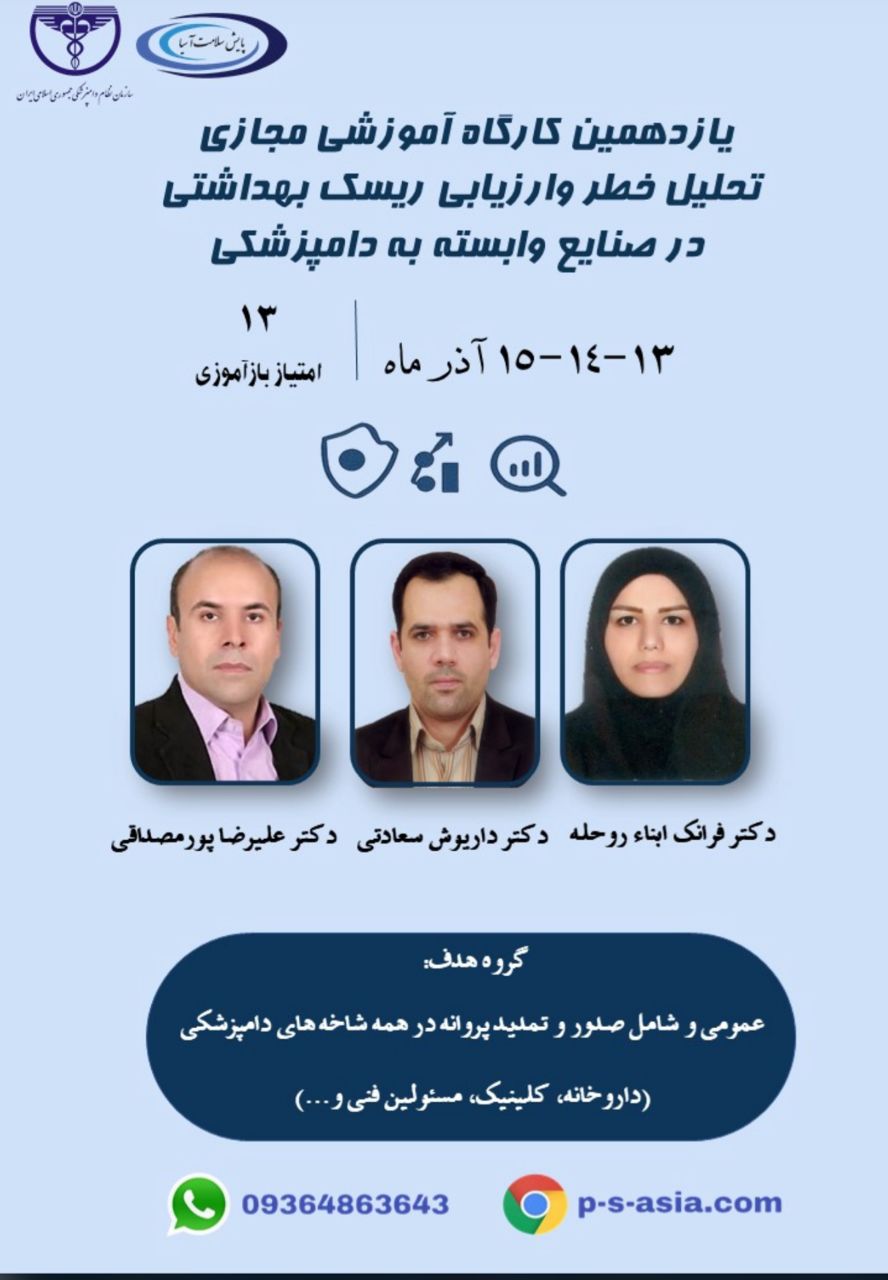 عنوان کارگاه: تحلیل خطر و ارزیابی ریسک بهداشتی در صنایع وابسته به دامپزشکی