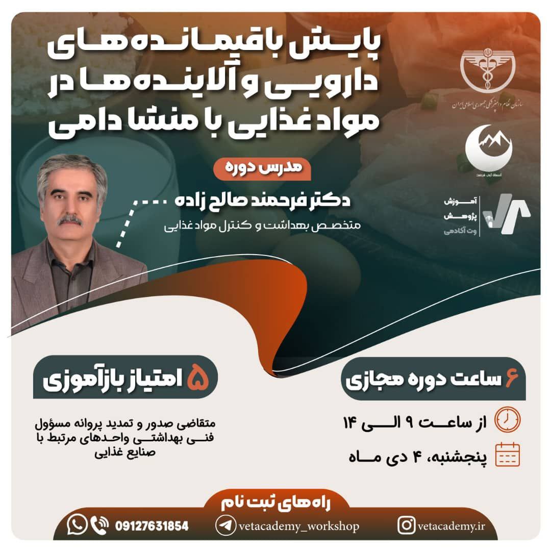 پایش باقیمانده های دارویی و آلاینده ها در مواد غذایی با منشا دامی