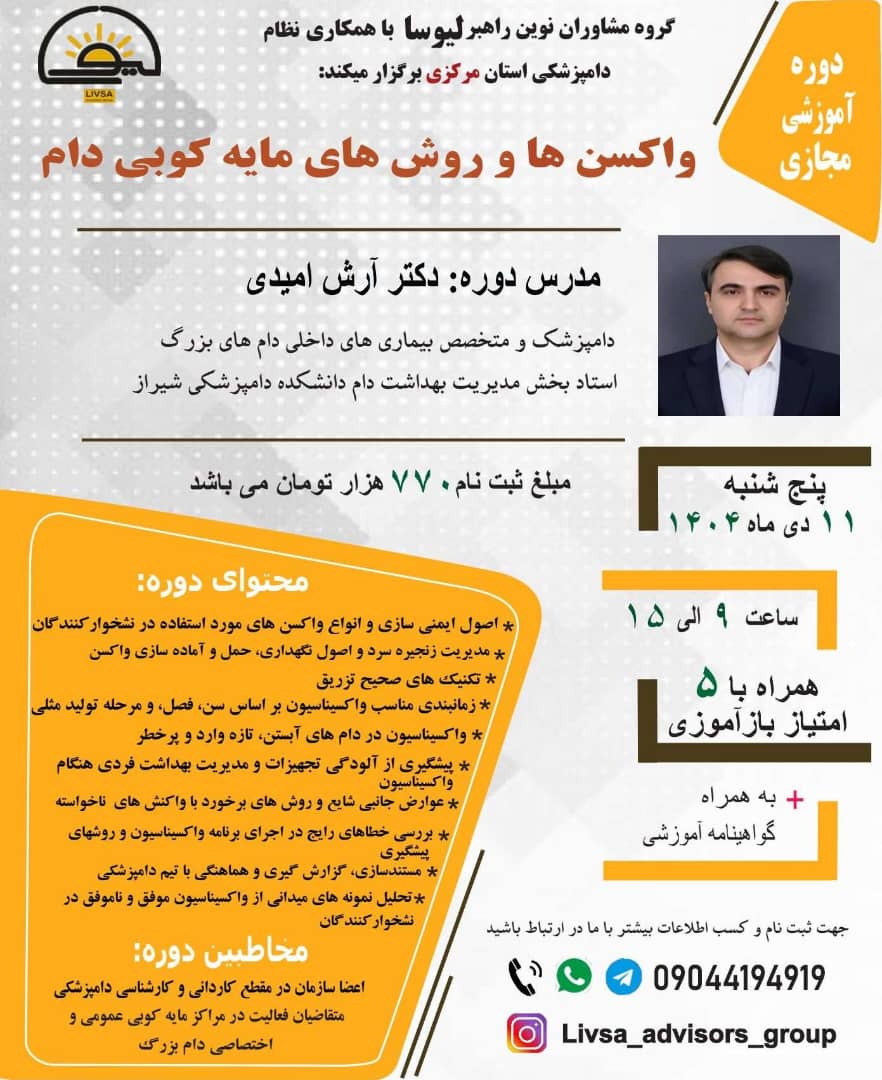 🔴🔴دوره آموزشی مجازی واکسن ها و روش های مایه کوبی دام