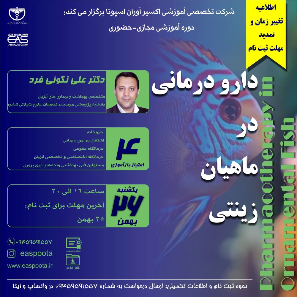 دوره آموزشی مجازی- حضوری" دارو درمانی در ماهیان زینتی"