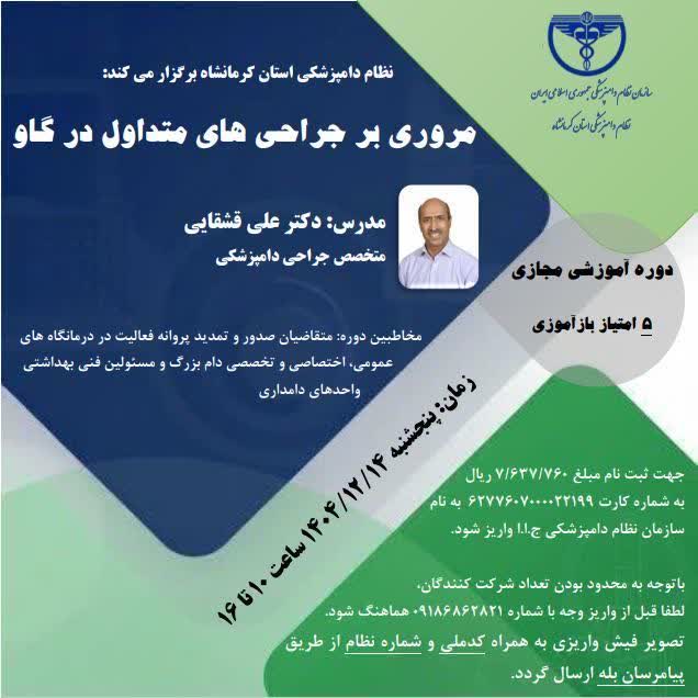 ❇️دوره آموزشی مجازی مروری بر جراحی های متداول در گاو