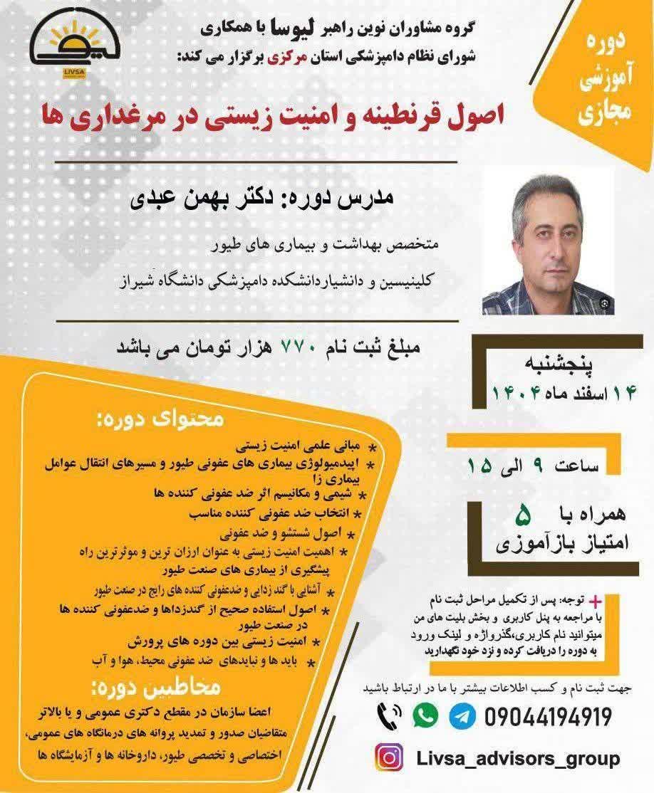 🔴🔴 اطلاعیه تاریخ جدید برگزاری دوره آموزشی مجازی اصول قرنطینه و امنیت زیستی در مرغداری ها